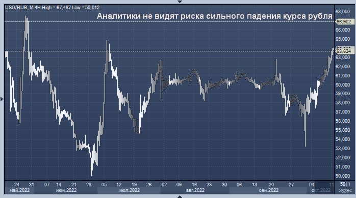 Но не экономика, а рост геополитической напряженности, стал главным фактором падения нацвалюты. Внешние факторы по-прежнему не оказывают влияние на рубль. Это можно проследить по его реакции на новости. Так, в пятницу рубль вырос на новости о том, что и Владимир Путин и Владимир Зеленский посетят форум G20 в Индонезии, а значит межу ними возможна встреча, а значит возможно ослабление конфликта. Напротив, в понедельник и вторник рубль резко упал на последние события, обостряющие военный конфликт: атака на Крымский мост и ответные ракетные обстрелы энергосистемы Украины. И хотя Запада фактические достиг предела по санкциям и ответить может разве что только усиление военной помощи, что он уже и пообещал сделать, рубль упал.