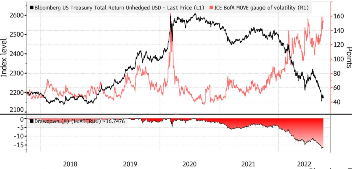 Индекс совокупной доходности Bloomberg US Treasury Total Return Index потерял в этом году около 13%, что почти в четыре раза больше, чем в 2009 году: это худший результат за год с момента его создания в 1973 году.