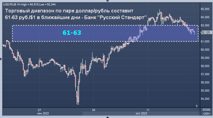 Курс доллара к рублю, скорее всего, будет находиться в ближайшие дни в рейндже 61-63 руб./$1, а курс евро к рубль - в зоне 60,5-62,5 руб./EUR1, считает директор департамента операций на финансовых рынках банка "Русский Стандарт" Максим Тимошенко.