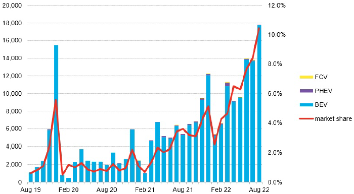 Подобная динамика неудивительна, учитывая рост продаж электромобилей в Китае — с большим отрывом крупнейшего рынка в мире — на 83% г/г в сентябре. Кроме того, в августе в стране было продано 17,8 тыс. электрических малотоннажных грузовых автомобилей (LCV, +231% г/г), а их доля на рынке достигла нового рекорда в 10,4%.