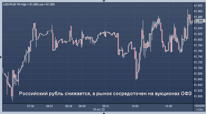 В 07:09 по Гринвичу рубль был на 0,3% слабее по отношению к доллару на уровне 61,76 и не изменился на уровне 60,75 по отношению к евро. Он укрепился на 0,1% по отношению к юаню до 8,50.