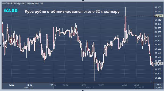 "Мы по-прежнему исходим из того, что ближайшие перспективы доллара определит устойчивое предложение валюты в условиях приближения налогового периода (25 октября). Ждем, что курс доллара останется в зоне 60-62 руб./$1 и будет тяготеть к ее нижней границе в ближайшие дни", - прогнозирует аналитик Промсвязьбанка Локтюхов.