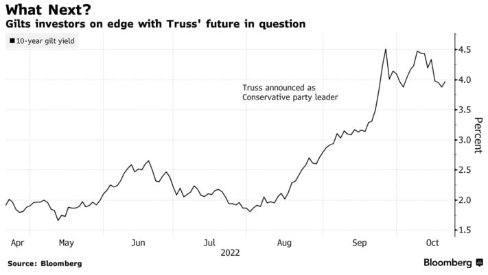 Британские облигации оказались под давлением в четверг утром, и фунт упал на фоне сомнений в том, сможет ли премьер-министр Лиз Трасс удержаться у власти.