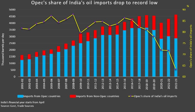Данные показали, что доля России в импорте нефти в Индию выросла до рекордно высокого уровня в 23% с 19% в предыдущем месяце, в то время как доля Ближнего Востока снизилась до 56,4% с 59%.
