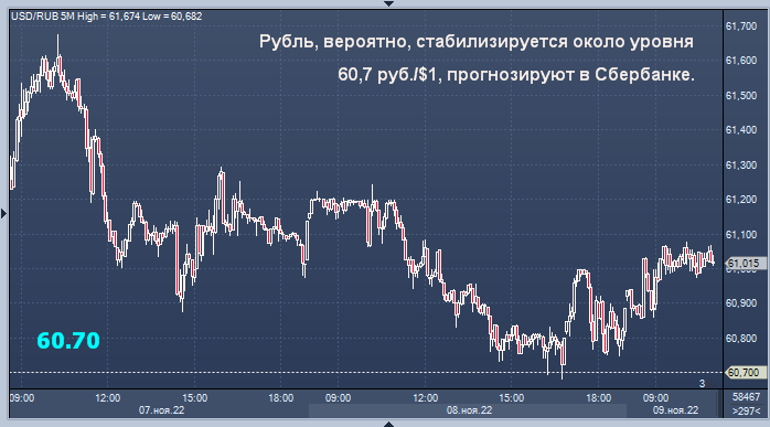 Рубль, вероятно, стабилизируется около уровня 60,7 руб./$1, прогнозируют в Сбербанке. Нефтяной рынок продолжит учитывать риски на стороне спроса, и котировки нефти марки Brent могут отступить до $94 за баррель, полагают аналитики Sber CIB.