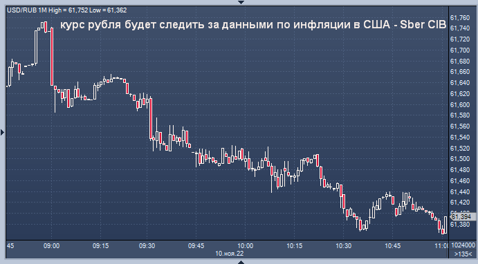 "Если базовая инфляция, как и в предыдущие два месяца, составит 0,6%, рынок будет ждать более активного повышения ставки ФРС. Это спровоцирует глобальный рост доллара и ослабление рубля - до 62 руб./$1. Если же инфляция в США существенно замедлится, глобальное укрепление доллара приостановится, а рубль в этом случае вернется к 61 руб./$1", - указывают аналитики Сбербанка.