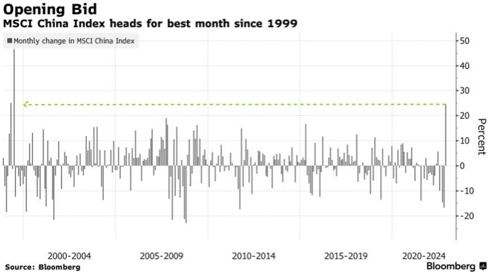 Индекс MSCI China стал лучшим месяцем с 1999 года