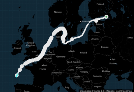 Проведя первую половину года в районе Тайваня, она недавно загрузила партию сырой нефти в российском порте Приморск на Балтийском море. В настоящее время судно плывет на юго-запад по маршруту вокруг северо-западной Европы, указывая пункт назначения в Фуджейре в Объединенных Арабских Эмиратах.