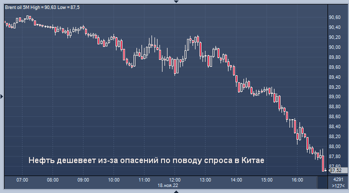 Нефть марки Brent подешевела на 1,80 доллара, или на 2%, до 87,98 доллара за баррель к 13:00 по Гринвичу, ранее достигнув 87,86 доллара, самого низкого уровня с 3 октября. Американская нефть марки West Texas Intermediate (WTI) подешевела на 1,52 доллара, или на 1,9%, до 80,12 доллара. К моменту написания статьи падение достигает уже 3%.