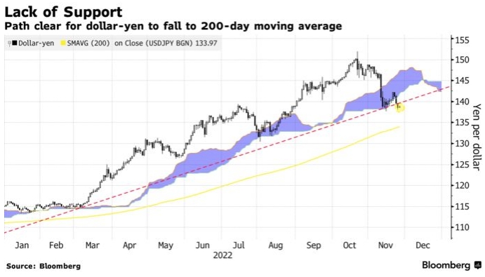Путь к падению доллара к иене до 200-дневной скользящей средней открыт