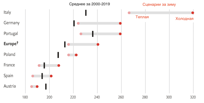 Из-за такой неопределенности трудно точно спрогнозировать смертность в Европе этой зимой. Единственный однозначный вывод, который позволяет сделать данная модель, заключается в том, что, если алгоритмы 2000-19 годов будут действовать и в 2022-23 годах, то энергетический кризис окажется смертоносным оружием. При ценах на электроэнергию, которые будут близки к текущему уровню, в обычную зиму погибло бы примерно на 147 000 человек (на 4.8% больше, чем в среднем) больше, чем если бы расходы вернулись к среднему уровню, существовавшему в 2015-19 годах. В случае умеренных температур, если взять самую теплую зиму за последние 20 лет для каждой страны, эта цифра снизилась бы до 79 000, и прирост составил бы 2.7%. А в холодных условиях, учитывая самую холодную зиму в каждой стране с 2000 года, этот показатель увеличился бы до 185 000 — рост на 6.0%.