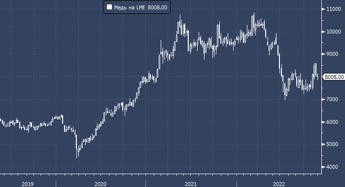 Запасы меди в этом году сократились, что усилило опасения по поводу дефицита, даже несмотря на экономическую нестабильность и перспективы глобальной рецессии. Многие руководители и топ-менеджеры других крупных сырьевых компаний предупреждают о блестящих перспективах меди и указывают на необходимость огромных объемов новых поставок металла. Тем не менее цены на медь пока остаются глухи к прогнозам устойчивого роста выше 10 000 долларов за тонну и колеблются около 8 000 долларов за тонну.