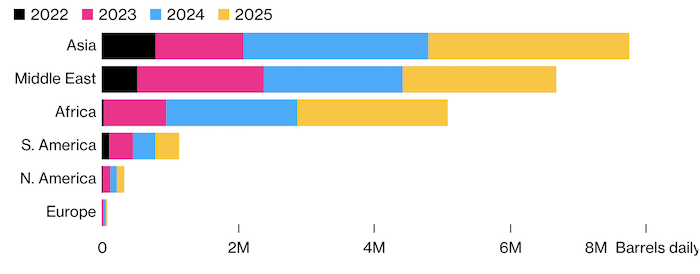 Ожидается, что этот разрыв увеличится. По оценкам Rystad Energy, в ближайшие три года планируется ввести в эксплуатацию еще около 8 млн баррелей нефтеперерабатывающих мощностей в сутки, при этом наибольший прирост будет наблюдаться в Азии, а наименьший — в Европе.