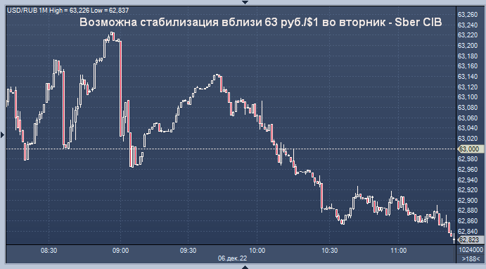 "Рубль в понедельник ослаб на 0,5% - до 62,35 руб./$1. Учитывая глобальное укрепление американской валюты после выхода сильной макростатистики и снижения цен на нефть на 3%, это довольно умеренное падение. Сегодня рубль дешевеет более чем на 1% - до 63 руб./$1. Это обусловлено возросшим спросом на валюту после сообщений о подготовке ЕС девятого пакета санкций против России, который может включать ограничения в отношении банков. Повторяется история октября, когда рубль слабел почти до 65 руб./$1 из-за опасений по поводу санкций против НКЦ. Не исключено, что в ближайшее время российская валюта вновь подешевеет до этого уровня. Однако во вторник возможна стабилизация вблизи 63 руб./$1, поскольку произошедшее ослабление всё же довольно существенное", - считают аналитики Sber CIB.