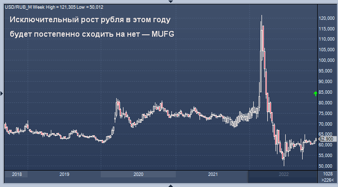 Российский рубль был одной из немногих валют развивающихся стран, которая в этом году опережала доллар США. Экономисты MUFG Bank ожидают, что в будущем году исключительно сильный рост рубля сойдет на нет.