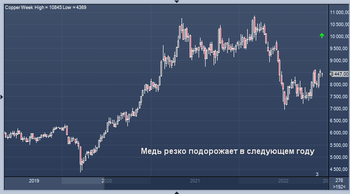 «Жестко сбалансированный рынок и минимальные мировые запасы меди (потребление менее двух недель) будут поддерживать цены в 2023 году. Долгосрочные перспективы меди поддерживаются спросом в связи с энергетическим переходом».