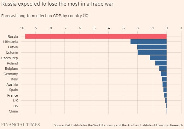 Например, наблюдается всплеск экспорта в Россию среди стран, через которые некоторые предприятия перенаправляют торговлю. Увеличился экспорт в Россию таких стран, как Турция и Казахстан. По данным Кильского института, в то время как ЕС экспортировал в Россию на 43% меньше товаров в период с июня по август, Китай экспортировал на 23% больше товаров.