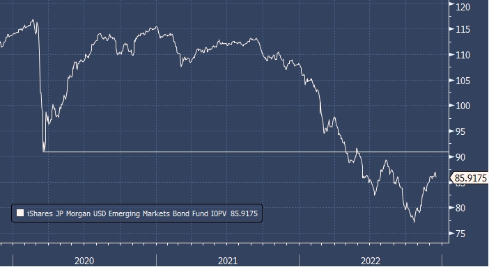 Динамика паев ETF-фонда iShares JP Morgan USD Emerging Markets Bond Fund IOPV, ориентированного на облигации EM