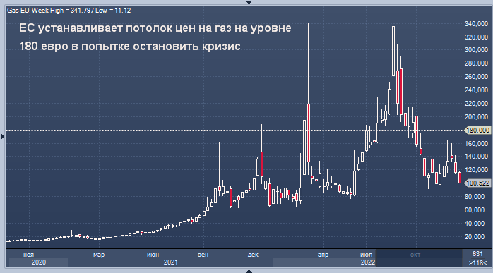 ЕС согласился ограничить цены на природный газ на уровне 180 евро за мегаватт-час, или примерно 56 долларов за миллион британских тепловых единиц. Для срабатывания инструмента цены на газ должны быть выше потолка в течение трех дней, а также в определенной степени выше цен на СПГ. Если бы потолок был введена в начале этого года, он бы применялся более 40 дней в августе и сентябре.