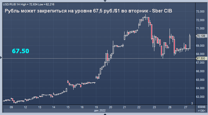 "Рубль в понедельник утром ослаб до 70 руб./$1 из-за повышенного спроса на валюту, но уже в течение дня держался вблизи 68 руб./$1 и лишь вечером отступил к 69 руб./$1. Во вторник утром рубль вновь приближается к 68 руб./$1. Полагаем, что спрос на валюту уже удовлетворён. В этих условиях рубль может закрепиться на уровне примерно 67,5 руб./$1", - отмечают эксперты Сбербанка.