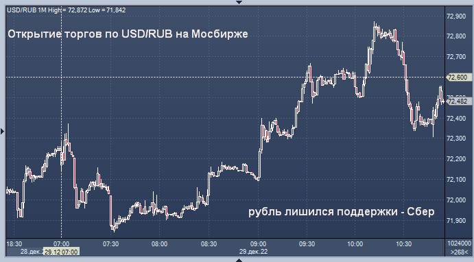 Если рубль ослабнет до уровня выше 72,6 руб./$1, недавнего локального максимума по USD/RUB, это будет говорить об отсутствии достаточной поддержки рубля и его возможном дальнейшем ослаблении до конца года, считают в Сбербанке.