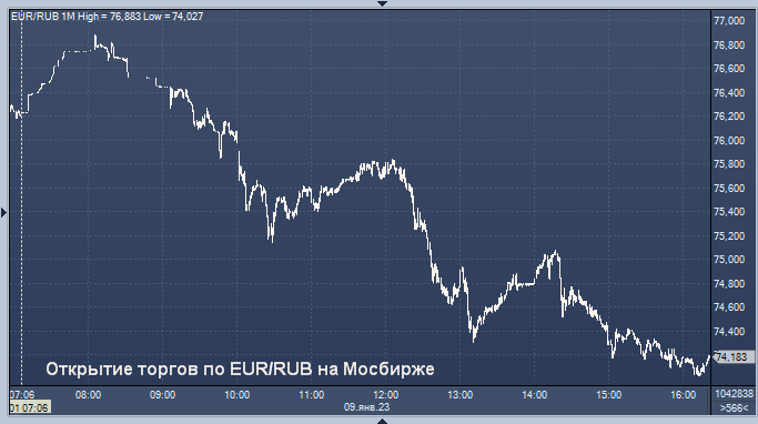 Таким образом, по официальному курсу ЦБ доллар упал к рублю на 3 копейки, евро упал к рублю на 58 копеек, а китайский юань вырос к рублю на 39 копеек по сравнению с официальным курсом 31 декабря. Объем торгов на Московской бирже к 16:20 мск понедельника составил 1 218,4037 млрд рублей или 17 322,2498 млн долларов. Курс рубля сегодня вырос на фоне ралли рисковх активов и нефти, в частности, после открытия Китаем своих границ.