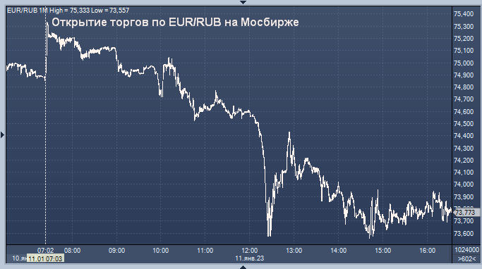 - 74,1361 рубля за 1 евро