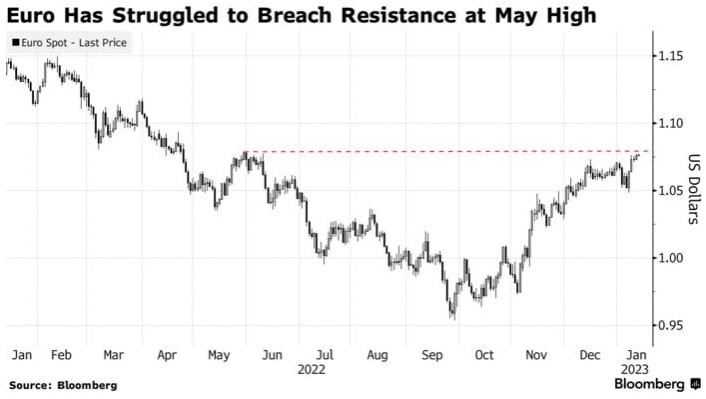 Единая валюта укрепилась почти на 14% по сравнению с двухдесятилетним минимумом в 95,36 цента США, установленным в ноябре, поскольку трейдеры перестали делать ставки на агрессивное ужесточение денежно-кредитной политики Федеральной резервной системы. Тем не менее, евро до сих пор не смог подняться выше уровня $1,0787, достигнутого 30 мая.