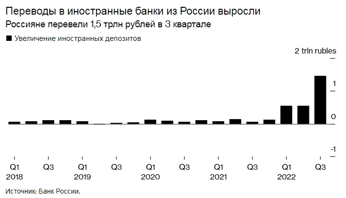 Переводы в иностранные банки из России выросли. Россияне перевели 1,5 трлн рублей в 3 квартале. Источник: Банк России.