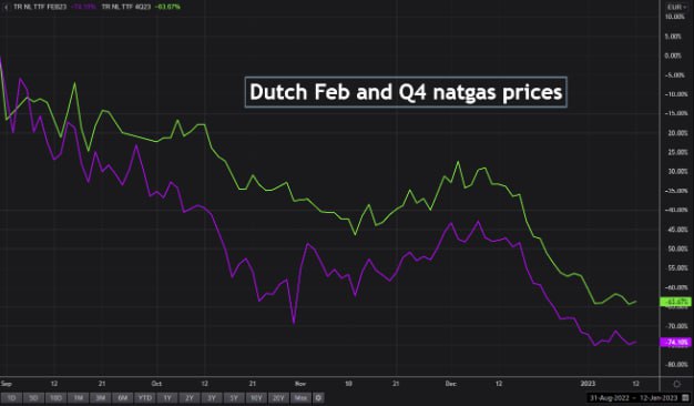 Странная погода сыграла огромную роль. С конца сентября 2022 года средняя температура в Германии - крупнейшем потребителе газа в Европе - была на 25%, или на 1,58 градуса Цельсия, выше нормы. А по прогнозам на новый год мягкая погода продержится еще как минимум месяц.