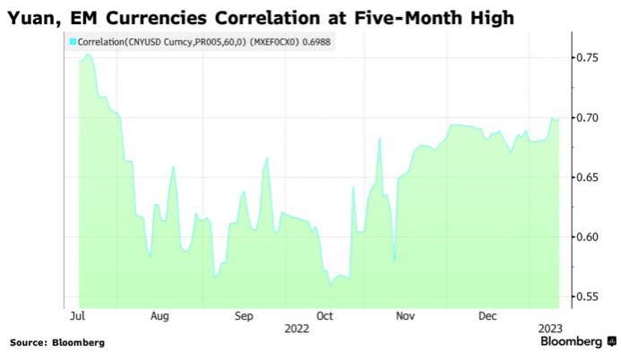 Корреляция юаня и валют развивающихся стран на уровне пятимесячного максимума