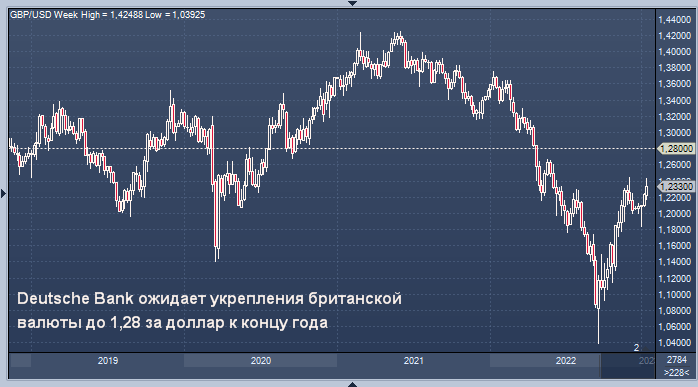 Deutsche Bank ожидает укрепления британской валюты до 1,28 за доллар к концу года по мере улучшения глобального фона и снижения внутренней уязвимости.