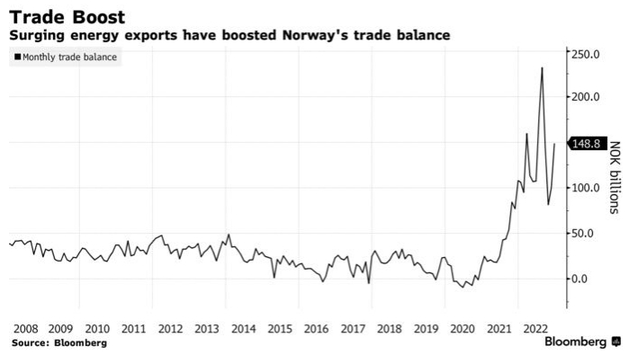 Стратеги сосредотачиваются на условиях торговли Норвегии, соотношении экспортных и импортных цен, которое служит мерой финансовой устойчивости, которые резко выросли с 2020 года в прошлом году, подчеркнув ее способность снабжать Европу энергией во время кризиса.