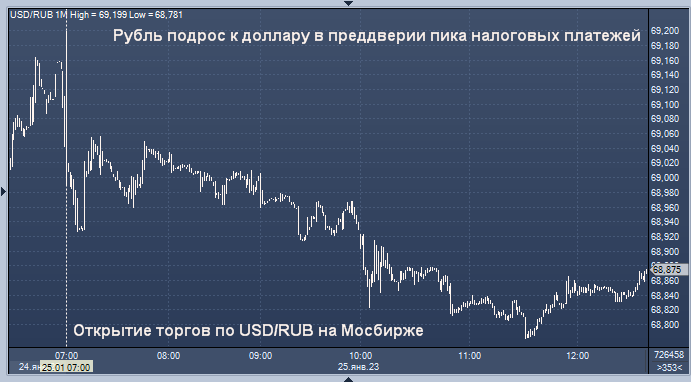 «Пик текущего налогового периода приходится на 30 января, и во второй половине недели рубль может укрепиться», — отмечают аналитики банка «Санкт-Петербург». «Курс USDRUB все еще имеет потенциал снижения до 68,5 руб/$ к выходным».