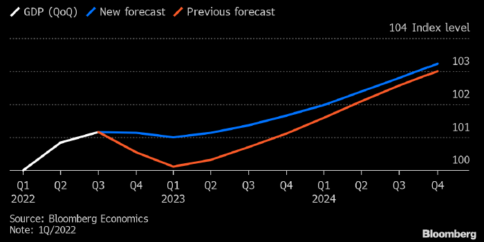 Впрочем, по их мнению, даже если техническая рецессия будет зафиксирована, то это будет мало что значить, и мало на что повлияет. Главный вывод Bloomberg Economics заключается в том, что комбинация удивительной устойчивости экономики региона и весьма небольшого сокращения доходов его граждан делает глубокий спад маловероятным.