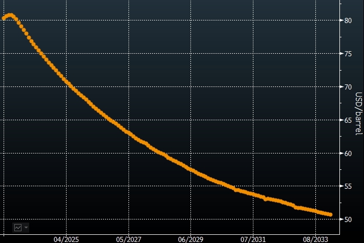 Кривая цен фьючерсных контрактов на нефть WTI.