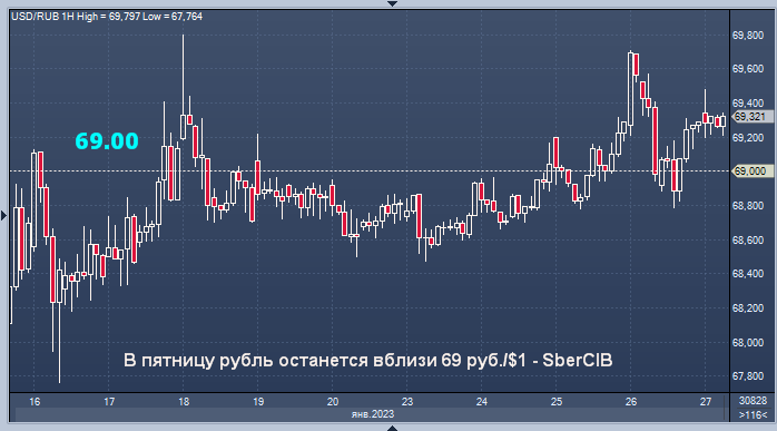 Также аналитики SberCIB считают, что отметка 69 руб./$1 соответствует краткосрочному равновесному значению рубля и в пятницу он останется вблизи этого уровня.