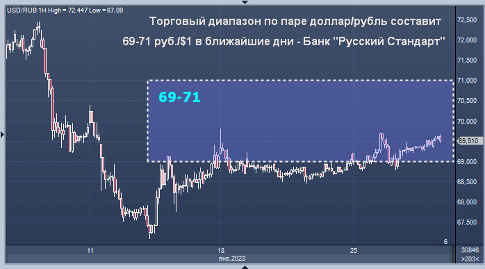 Торговый диапазон по паре доллар/рубль, скорее всего, составит в ближайшие дни 69-71 руб./$1, по паре евро/рубль - 75-77 руб./EUR1, пишет в понедельник утром директор департамента операций на финансовых рынках банка "Русский Стандарт" Максим Тимошенко. П