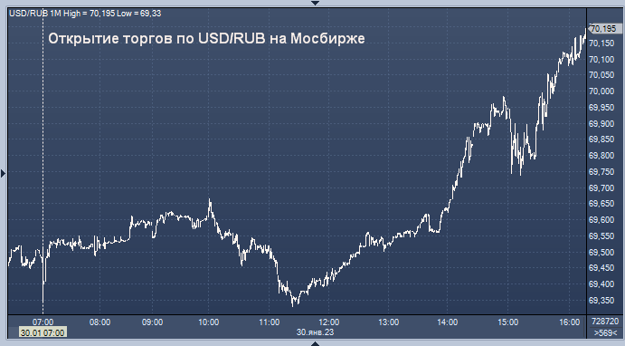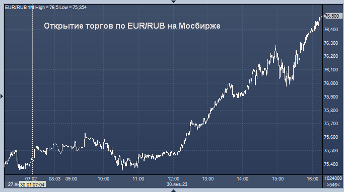 Таким образом, по официальному курсу ЦБ доллар вырос к рублю на 26 копеек, евро вырос к рублю на 37 копеек, а китайский вырос к рублю на 5 копеек по сравнению с официальным курсом субботы. Объем торгов на Московской бирже к 16:14 мск понедельника составил 965,0552 млрд рублей 13 918,2888 млн долларов. Рубль сегодня слабеет на фоне прохождения пика налогового периода и на ожиданиях введения потолка на нефтепродукты 5 февраля.