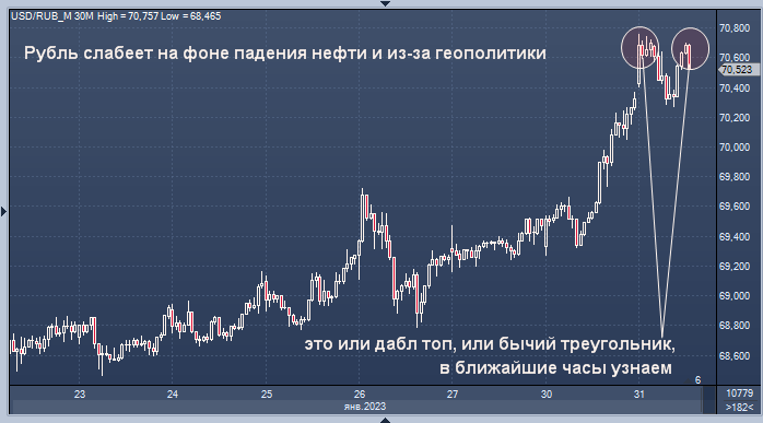 "Пара USD/RUB достигла психологически значимой отметки 70. В ближайшие дни, по всей видимости, не стоит ожидать укрепления рубля. Крупные налоговые выплаты, которые могут вызвать продажи валюты, произойдут в середине и в конце февраля. Ориентир для курса рубля на вторник - диапазон 70-71 руб./$1", - указывает эксперт в комментарии.