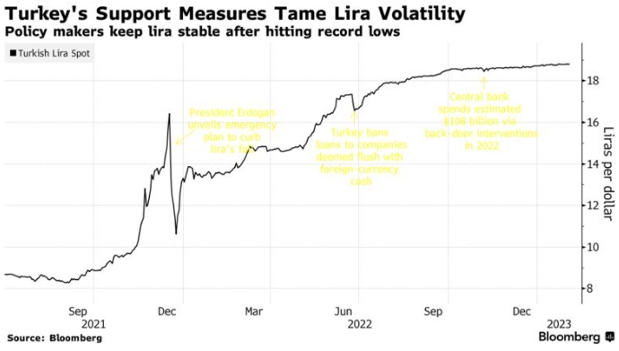 Поскольку нетрадиционная политика Эрдогана по снижению процентных ставок намного ниже уровня инфляции продолжается, турецкие власти ввели альтернативные инструменты для стабилизации лиры. В прошлом году центральный банк потратил примерно 108 миллиардов долларов на скрытые интервенции, чтобы компенсировать влияние более мягкой денежно-кредитной политики, что помогло сделать ее наименее волатильной валютой в развивающемся мире за последние шесть месяцев.