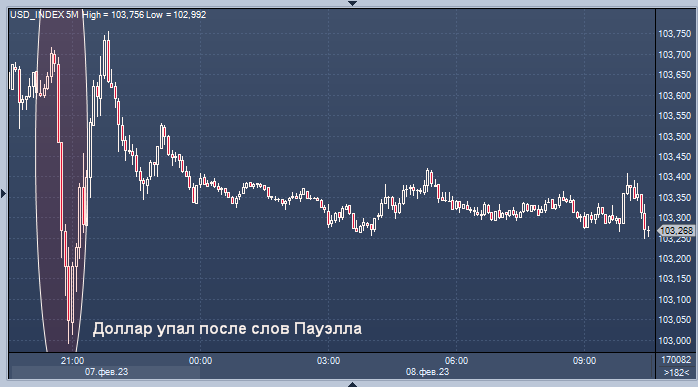 Это привело к тому, что индекс доллара США достиг месячного максимума в 103,96 во вторник, поскольку инвесторы повысили свои ожидания относительно того, сколько еще потребуется ФРС времени для продолжения повышения процентных ставок. Котировки фьючерсов показали, что рынки ожидают, что ставка по федеральным фондам достигнет максимума чуть выше 5,1% к июню.