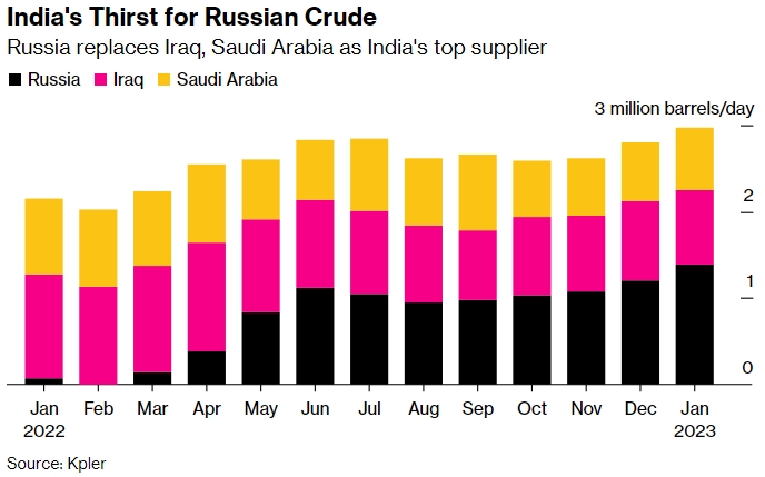 Индия жаждет российской нефти. Россия заменила Ирак и Саудовскую Аравию в качестве главного поставщика Индии. Источник: Кплер