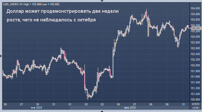 Индекс доллара, который измеряет курс американской валюты-убежища по отношению к шести основным валютам, вырос на 0,155% до 103,34, снизившись на 0,24% на предыдущей сессии. Ожидается, что индекс продемонстрирует недельный прирост, это вторая положительная неделя подряд, такого роста у него не было с октября.