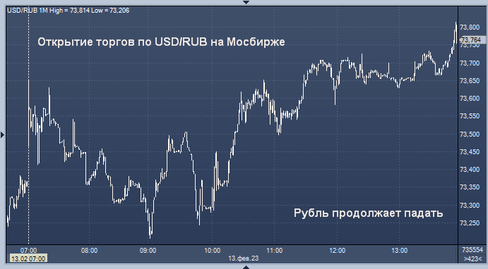 Рубль продолжает свое падение по отношению к доллару девятый день, что является самой продолжительной серией потерь с октября, в результате чего российская валюта опустилась до самого слабого уровня с 25 апреля. Рубль -0,3% до 73,6100/$.