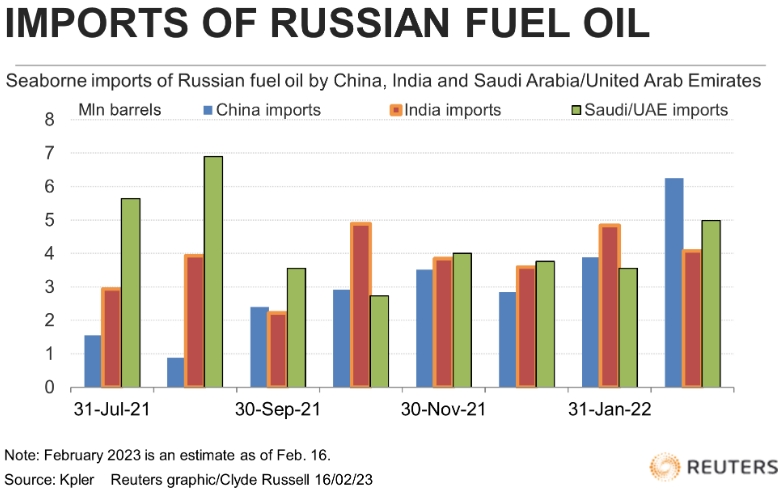 Импорт российского мазута Китаем, Индией и Саудовской Аравией/ОАЭ