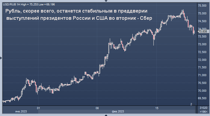 Рубль, скорее всего, останется стабильным в преддверии выступлений президентов России и США во вторник, 21 февраля, указывают эксперты инвестбанка.
