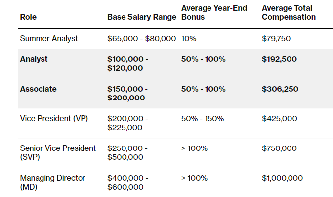 Но базовая зарплата не включает в себя основного источника дохода на Wall Street: бонусов. В среднем, бонусы сотрудников инвестбанков составляют около 50% их годовой зарплаты. Однако этот показатель сильно варьируется в зависимости от года и фирмы: некоторые элитные фирмы платят более 100% базовой заработной платы в качестве денежного бонуса.