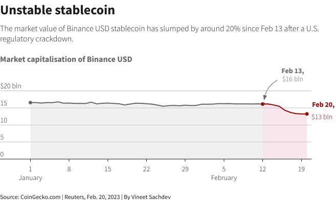 На рынке стоимостью 137 миллиардов долларов могут произойти сейсмические сдвиги после того, как нью-йоркская трастовая компания Paxos, которая выпускает стабильную монету Binance, заявила, что прекратит выпуск новых токенов BUSD после того, как американские регуляторы назвали актив незарегистрированной ценной бумагой.