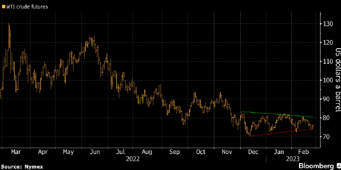 С декабря цены на нефть консолидируются в широком, но сужающемся коридоре. Вероятно, инвесторы хотят получить больше информации о перспективах экономики Китая, а также оценить влияние быстрого роста процентных ставок на мировую экономику и, следовательно, на спрос на нефть.